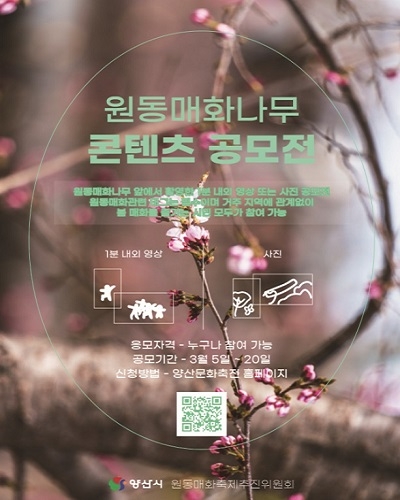 또한 원동을 찾는 관광객을 위해 원동매화축전추진위원회에서는 비대면 이벤트인 '나의 매화나무' 및 '원동매화 영상·사진 공모전'도 진행할 예정이다.