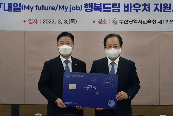 BNK부산은행과 부산시교육청이 3일 오후 3시 시교육청 제1회의실에서 ‘부산 직업계고 내일 행복드림 바우처 사업’ 추진 협약을 체결했다고 밝혔다.