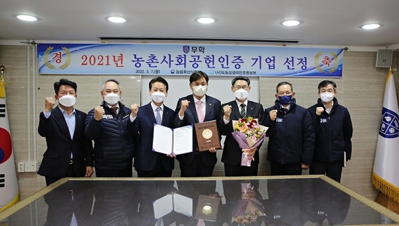 농촌사회공헌 인증제는 농촌 마을 및 지역과 3년이상 지속적인 교류를 통해 농촌활력에 크게 기여한 우수기업을 인증하는 제도이며, 무학은 농촌 발전에 기여해 온 점을 우수하게 평가받아 인증기관으로 선정됐다.
