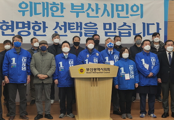 더불어민주당 부산선거대책위원회(부산선대위)가 대선 선거운동 마지막 날인 8일, 오전 11시 부산시의회 브리핑실에서 기자회견을 열고 이재명 후보에 대한 지지를 적극 호소했다.