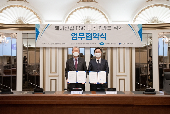 한국선급이 8일 부산 본사 대회의실에서 ㈜서스틴베스트와 ‘해사 산업 ESG 공동평가 위한 협약’을 체결했다고 밝혔다.