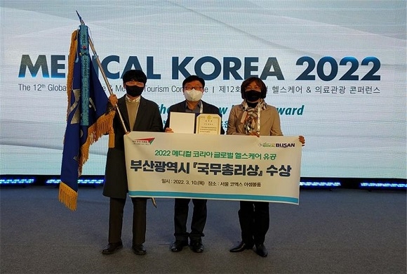 부산시가 지난 10일 열린 보건복지부 주관 ‘2022 메디컬 코리아 글로벌 헬스케어 유공 시상식’에서 국무총리 기관 표창을 수상했다고 11일 밝혔다.
