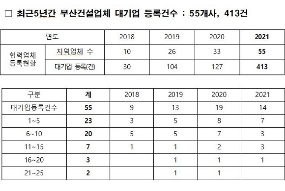 부산시가 15일 오후 2시 시청 1층 대회의실과 26층 회의실에서 ‘제2회 부산 건설업체-건설 대기업 상생 데이’ 행사를 진행한다고 밝혔다.