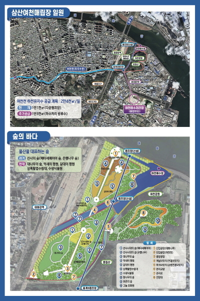 ‘숲의 바다’ 생태숲 조성과 함께 여천천과 태화강을 연결하는 산책로와 자전거 도로가 조성되면 여천천에서 태화강, 동천까지 걷거나 자전거를 타고 자연을 만끽할 수 있는 녹색 둘레길이 완성될 것이다.