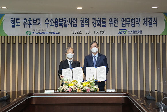 한국수력원자력(한수원)이 16일 경주시 본사에서 국가철도공단과 ‘수소 융복합 사업 협력 강화’ 업무협약을 체결했다고 밝혔다.