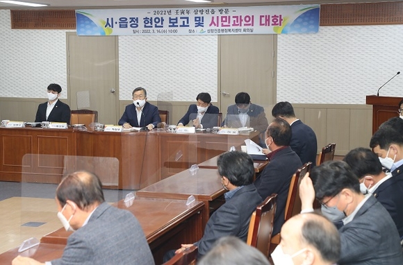 이번 읍면동 방문은 코로나19 상황을 고려해 읍면동 기관·단체장 등 지역주민 대표 30명 내외로 초청하여 방역 수칙을 준수하면서 진행됐다.