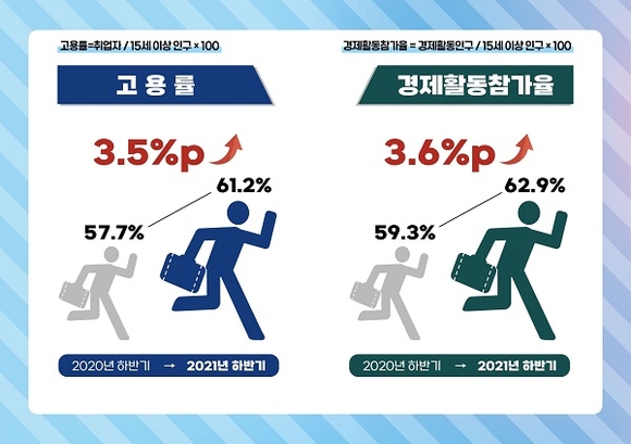 특히 경제협력개발기구(OECD) 비교기준인 15~64세 고용률은 70.3%로 최근 4년간 고용률을 비교한 결과 가장 높은 고용률을 보였으며, 경남 시 지역 중 15~64세 고용률이 제일 높았다. 또한 15~29세 청년고용률은 전년동기 대비 10.6%p 상승해 45.6%를 나타냈다.