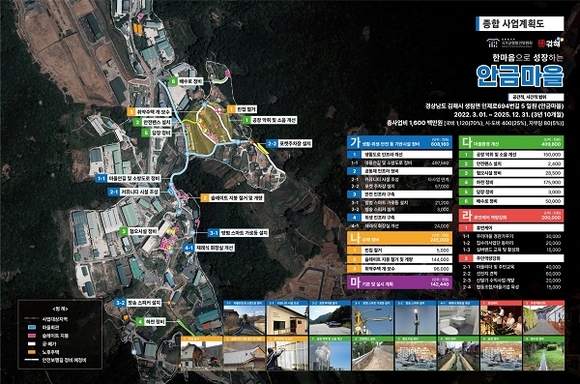이번에 선정된 생림면 안금마을은 주변에 무분별하게 조성된 공장들로 인해 좁은 마을 안길의 대형트럭 통행이 잦아 보행 안전이 위협받고 있고 소음과 악취 등으로 주민간의 갈등이 깊어지고 있어 '한마음으로 성장하는 안금마을'을 비전으로 생활도로 인프라 개선, 마을 포켓주차장 조성, 다목적커뮤니티시설 조성, 방범 스마트 가로등, 주택수리, 슬레이트지붕 개량, 빈집철거 등에 16억원을 투입해 주거환경을 개선하고 주민주도의 사업추진능력을 길러 주민자치형 지역발전 기반을 구축할 계획이다.