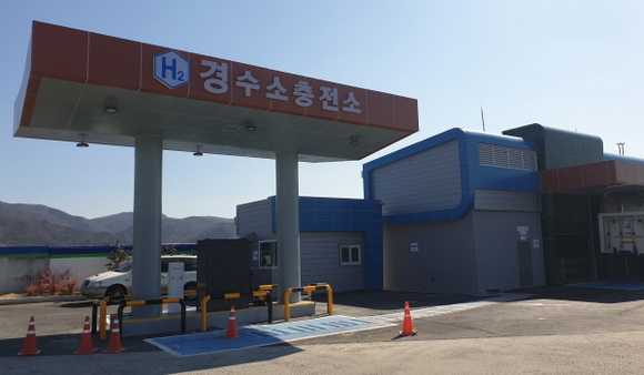 ‘경 수소충전소’는 시간당 넥쏘 차량 8대를 충전할 수 있는 압축기(40㎏/h)와 약 2000ℓ규모 용량의 저장용기가 설치됐다.