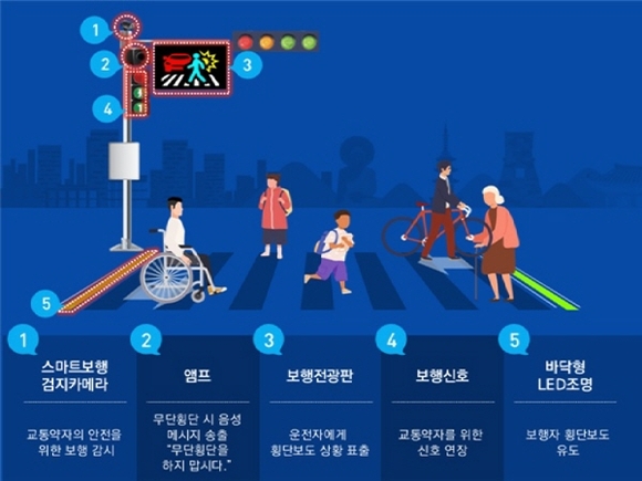 스마트 횡단보도는 도로 위의 위험상황을 인공지능(AI) 기반의 CCTV가 즉각적으로 감지해 빠르게 보행자의 안전을 위한 적절한 대응이 이뤄질 수 있도록 하는 시스템이다.