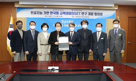 경남도교육청과 서울시교육청은 21일 도교육청 중회의실에서 '인공지능 기반 한국형 교육 데이터 세트(data set·정보 집합) 연구 개발'을 위한 통합 전담반(TF)을 발족했다.