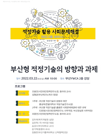 부산테크노파크와 부산경제정의실천시민연합(부산경실련) 시민대안정책연구소가 22일 오후 4시 부산 YMCA 2층 강당에서 ‘부산형 적정기술 방향과 과제’ 세미나를 개최한다고 밝혔다.