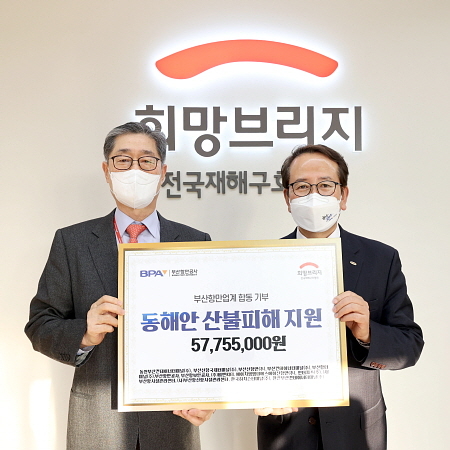 부산항만공사(BPA)가 부산항보안공사, 부산항시설관리센터 등 항만 공공기관과 부산항 10개 부두 운영사와 함께 경북, 강원 일대 산불 피해 이재민에 성금을 기부했다고 23일 밝혔다.
