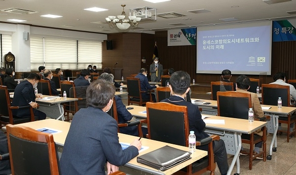 경남 김해시는 23일 오전 클레이아크김해미술관에서 '유네스코 창의도시 선포식'을 가졌다. 또 이를 기념해 전날과 이날 이틀간 김해상공회의소에서 워크숍을 마련했다.