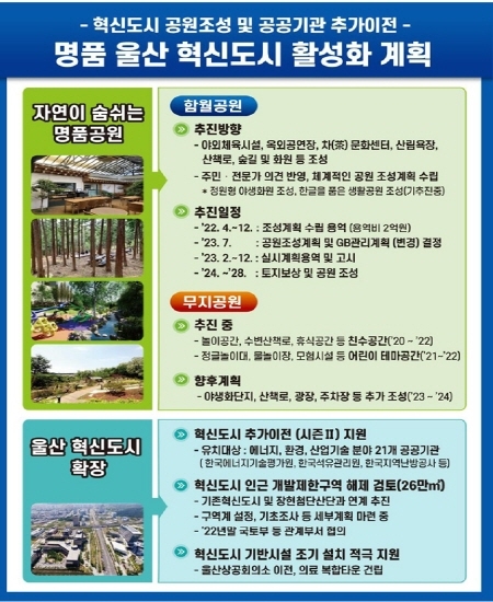 울산시는 29일 중구 함월루에서 혁신도시 공원조성과 공공기관 추가이전을 통한 ‘명품 울산 혁신도시 활성화 계획’을 발표했다.