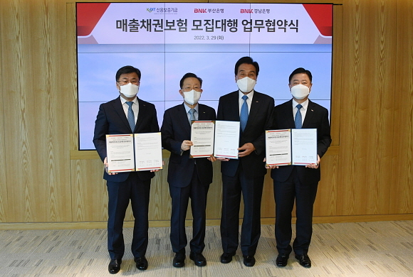 BNK부산은행이 29일 신용보증기금(신보)과 함께 지역 중소기업 부실채권에 따른 도산 방지 등을 위한 ‘매출채권보험 모집대행’ 협약을 체결했다고 밝혔다.