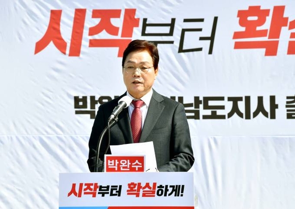 이날 박 의원은 경남도 경제통상국장과 창원시장, 인천국제공항공사 CEO, 재선 국회의원으로 지난 40년간 쌓은 행정 경험과 전문성을 강조하고, '시작부터 확실하게'라는 슬로건을 내 걸고 경남을 도약시키겠다는 강한 의지를 밝혔다.