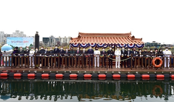 경남 진주시는 30일 소망진산 아래 남강둔치에 조성한 '물빛나루쉼터' 준공식을 가졌다.