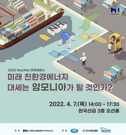 한국선급 등 ㈔해양산업통합클러스터(MacNet)가 내달 7일 오후 2시 ‘2022 MacNet 전략세미나, 미래 친환경에너지 대세는 암모니아가 될까’ 온라인 세미나를 연다고 31일 안내했다.