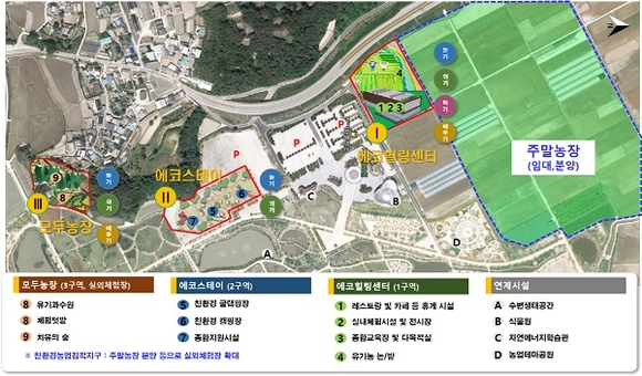 ◇유기농복합단지 에코힐링센터·에코스테이·모두농장 3구역으로 구성