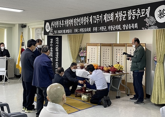 한국전쟁 전후 민간인 희생자 거창지역 유족회는 지난 30일 거창시니어클럽 강당에서 '제72주년 한국전쟁 전후 민간인 희생자 합동위령제 및 추모식'을 거행했다.