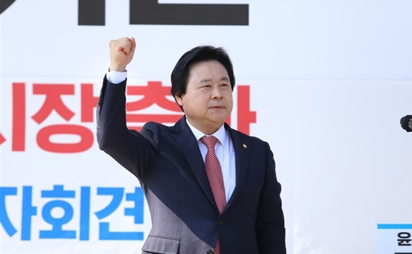 국민의힘 강기윤 의원이 지난 4일 한국산업단지공단 경남지역본부에서 제4대 창원시장 출마를 선언했다.