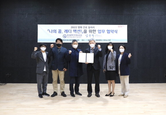 동서대학교 임권택영화연구소는 5일 오후 2시 동서대학교 센텀캠퍼스 민석소극장에서 부산시 미래교육원 진로진학지원센터와 2022 영화 진로동아리 '나의 꿈, 레디 액션!'을 위한 업무 협약식을 가졌다.