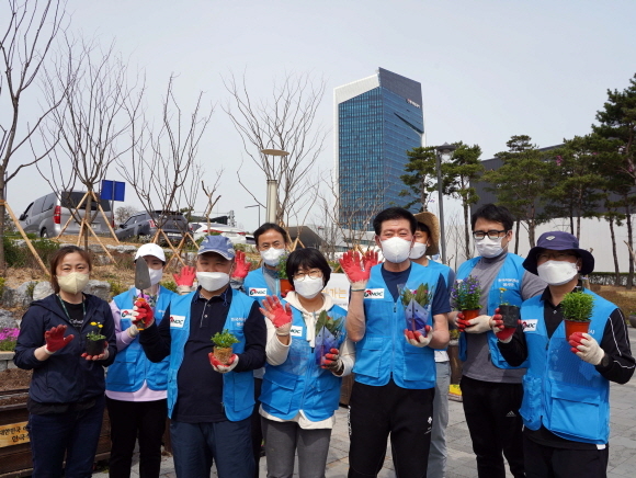 이날 석유공사 직원들은 주민들이 자주 찾는 중구 공룡발자국공원에서 봄꽃 식재, 흙 갈이, 화분 수리 등 화단 조성과 더불어 주변 쓰레기 수거 등의 환경정화활동을 했다.