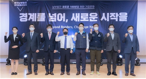 한국남부발전(주)이 창립 21주년을 맞아 5일 부산국제금융센터 4층 대강당에서 사창립 기념과 함께 조직문화 비전 선포식을 개최, “경계를 넘어, 새로운 시작을(Beyond Borders, Challenge Next)”를 조직문화 개선을 위한 슬로건으로 선포했다.
