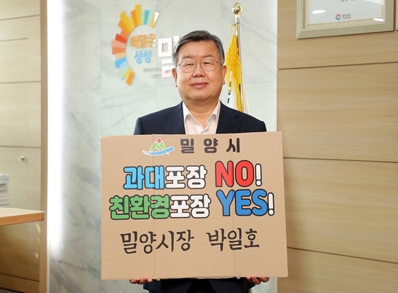 박일호 밀양시장은 황영호 경북 청도군 부군수의 지목을 받아 6일 과대포장으로 인한 쓰레기를 줄이기 위해 '과대포장 선물, 안 받고 안 사기' 챌린지에 동참했다.
