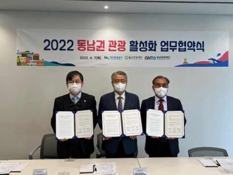 부산관광공사는 울산관광재단, 경남관광재단과 함께 7일 부울경 관광발전을 달성하기 위한 업무협약을 체결했다.