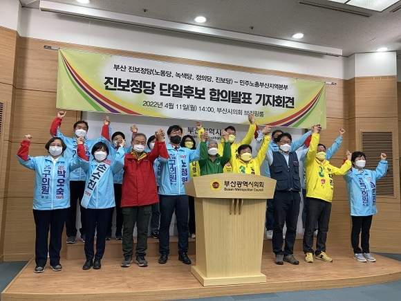 부산지역 진보4당은 민주노총 부산본부와 함께 오는 6월 1일 지방선거를 위해 '진보정당 단일화' 합의를 결정했다고 11일 기자회견을 열고 밝혔다.