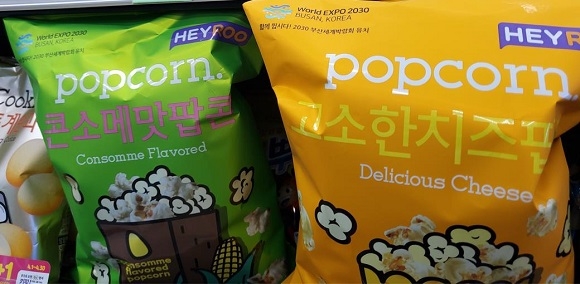 부산시와 2030부산세계박람회 유치위원회는 BGF리테일과 함께 2030부산세계박람회 유치 기원 헤이루(HEYROO) 콘소메맛팝콘, 고소한치즈 팝콘을 올해 연말까지 한정 판매한다고 12일 밝혔다.