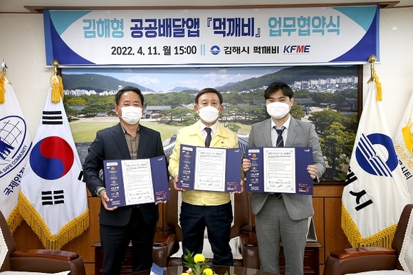 김해시는 지난 11일 시청에서 김해형 공공배달앱 협력사업자로 선정된 ㈜먹깨비, 김해시소상공인연합회와 업무협약을 체결했다.