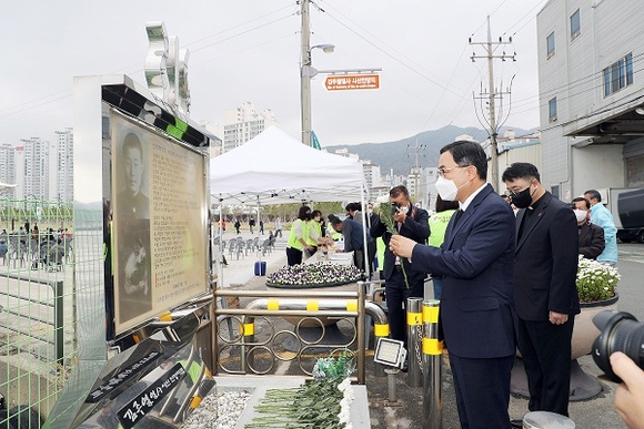 경남 창원시는 지난 11일 김주열 열사 시신인양지에서 (사)김주열열사기념사업회 주관으로 '김주열 열사 추모식'이 열렸다고 밝혔다.