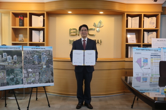 부산도시공사와 부산시 서구는 서구 샛디산복마을 도시재생 뉴딜사업의 성공적 추진을 위한 '거점시설 조성사업 위·수탁 협약'을 비대면 서면협약 방식으로 12일 체결했다.