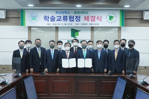 두 대학은 지난 12일 동명대 대학본부경영관 307호에서 전호환 동명대 총장과 차정인 부산대 총장 및 양측 관계자들이 참석한 가운데 동반 성장 및 미래 인재양성을 위한 학술교류 협정을 체결했다.
