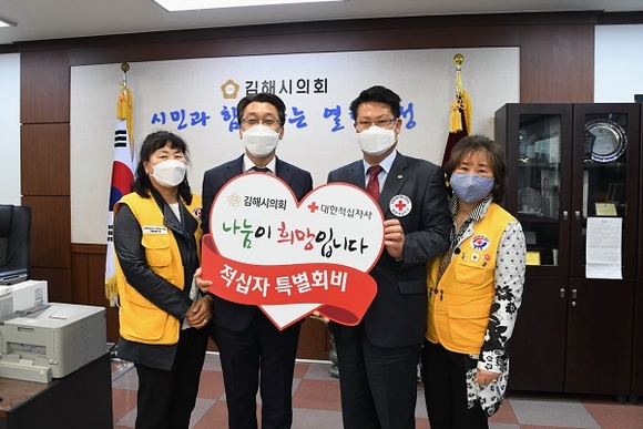 김해시의회는 지난 13일 시의회 의장실에서 대한적십자사 경남지사에 2022년도 적십자 특별회비 100만원을 전달했다.