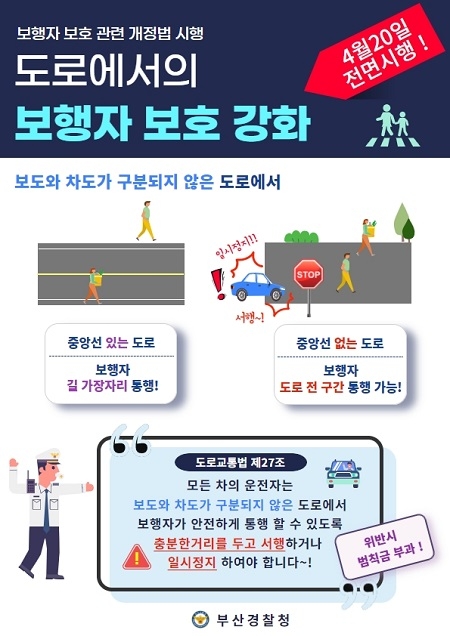 부산경찰청, '보행자 보호 강화' 도로교통법 개정 내용 적극 홍보