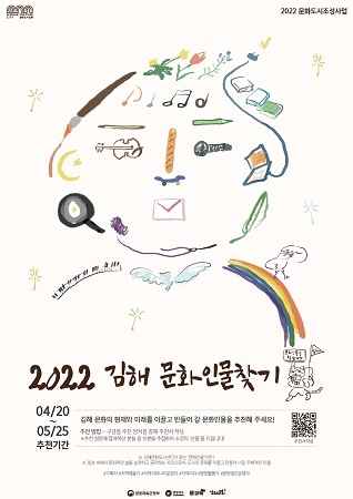 추천 기간은 20일부터 오는 5월 25일 오후 6시까지며, 추천 방법은 김해문화도시센터 홈페이지에 연결된 구글폼 설문 양식을 통해 1인 1추천을 원칙으로 한다. 추천 설문 참여자 중 15명을 추첨해 소정의 상품도 증정할 예정이다.