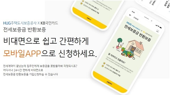 주택도시보증공사(HUG)는 ㈜KB국민카드와 함께 '비대면 전세보증금반환보증 서비스'를 출시했다고 20일 밝혔다.