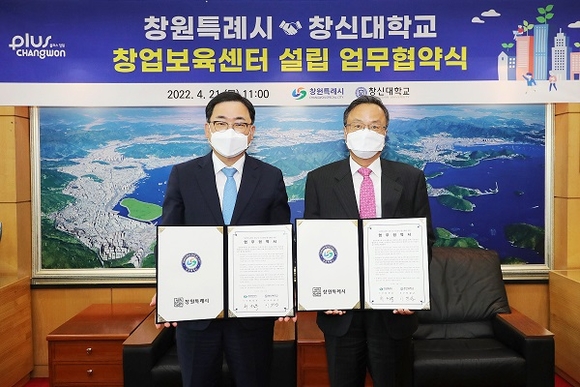 경남 창원시는 21일 시청 접견실에서 창신대학교와 창업보육센터 설립 및 운영을 위한 업무협약을 체결했다.