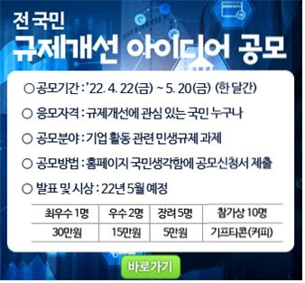 5월 중 발표 및 시상을 진행하고, 공모를 통해 나온 제안을 규제개선 우선과제로 추진할 방침이다.
