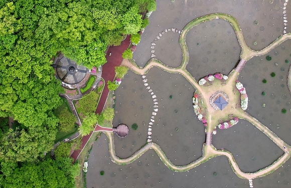 26일 경남 함양군 함양읍 쳔년의 상림공원 숲이 봄비를 머금고 연초록으로 물들어 있다. (사진=함양군 제공)