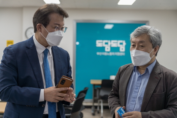더불어민주당 변성완 부산시장 예비후보는 노동절(5월 1일)을 앞두고 29일 이동 플랫폼 노동자 지원센터인 '도담도담센터'를 방문해 관계자들과 간담회를 진행했다.