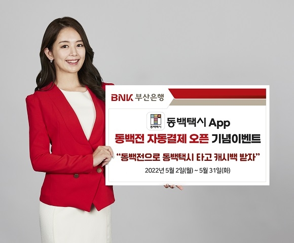 BNK부산은행은 '동백택시 자동결제 오픈'을 기념해 동백택시 이용 금액 캐시백 이벤트를 오는 31일까지 시행한다고 2일 밝혔다.