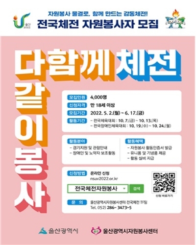 울산시가 오는 10월 울산에서 열리는 제103회 전국체육대회와 제42회 전국장애인체육대회의 자원봉사자를 모집한다.