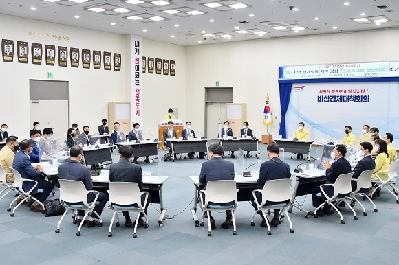 부산시는 3일 오전 산업단지 전문가들과 함께 '지역 경제성장 기반 강화, 스마트그린 산업단지 조성'을 주제로 제27차 비상경제대책회의를 열었다고 밝혔다.