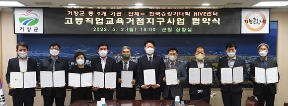 경남 거창군은 지난 2일 군청 상황실에서 교육부가 주관하는 사업인 '고등직업교육거점지구(HiVE)' 공모사업 추진을 위한 업무협약을 체결했다.