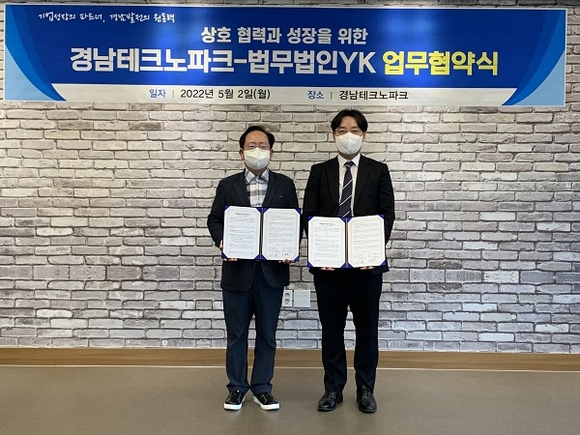 경남테크노파크(경남TP)와 법무법인 YK는 지난 2일 경남TP 본부에서 상호 협력과 법률 자문에 관한 업무협약을 체결했다.